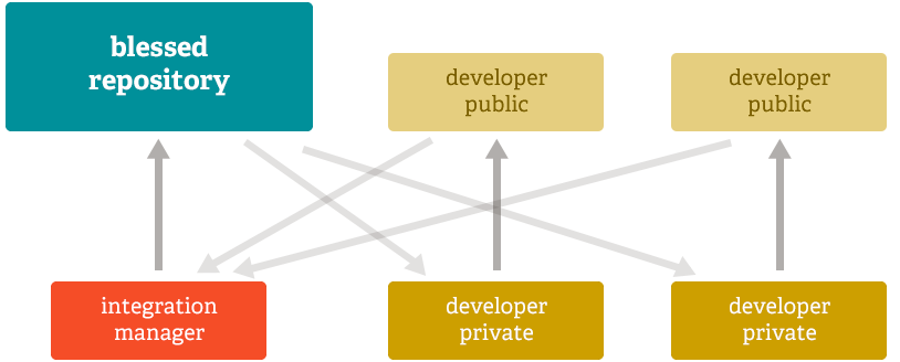 In the most common form, the open-source distributed workflow can look like this: